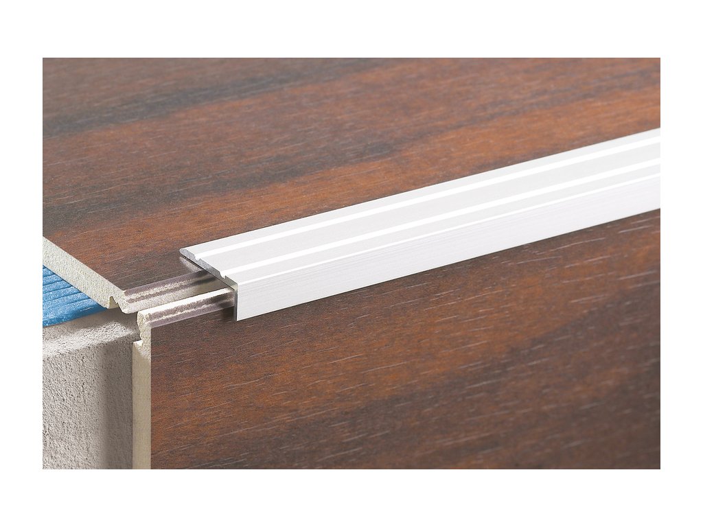 Hliníkový schodový profil chrání okraje schodů obložených dřevem nebo laminátem.